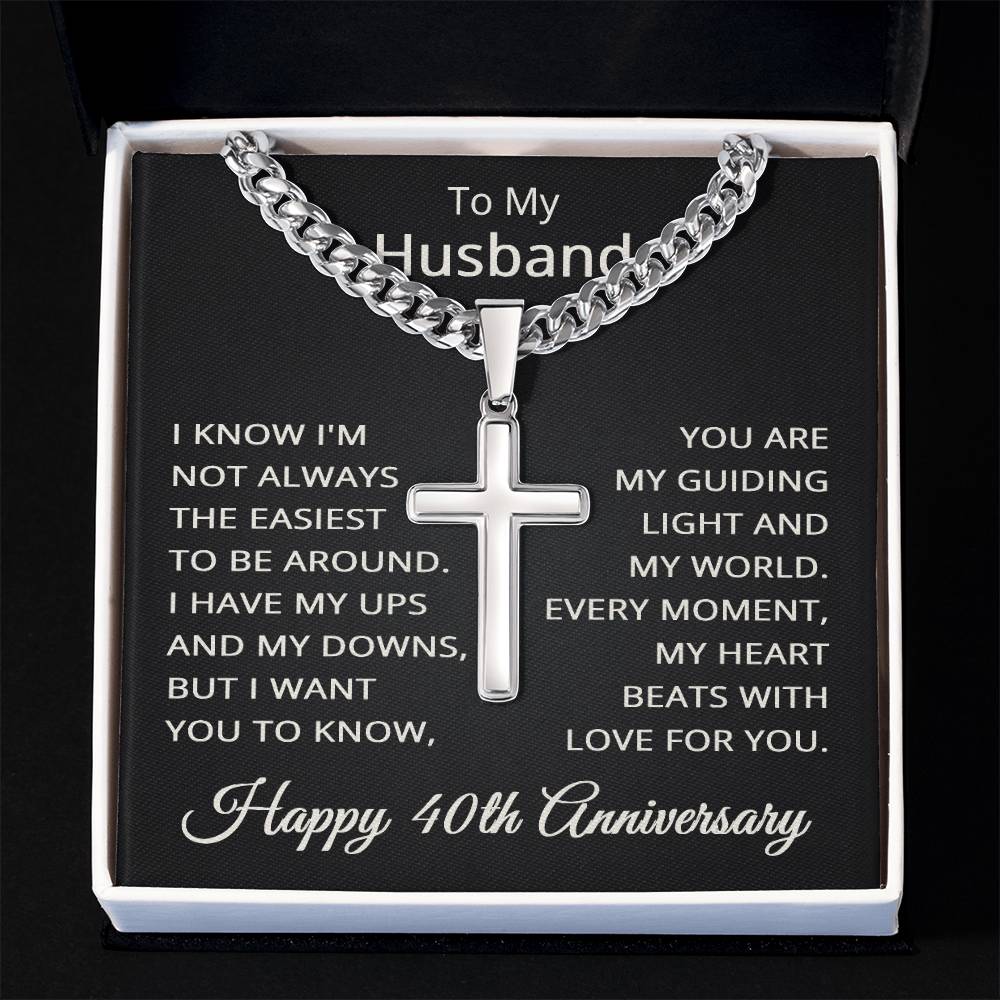 40th Anniversary Necklace for Husband 40 Years Anniversary Jewelry for Him Men Cuban Link Chain with Cross Pendant