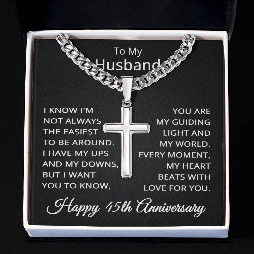 45th Anniversary Necklace for Husband 45 Years Anniversary Jewelry for Him Men Cuban Link Chain with Cross Pendant