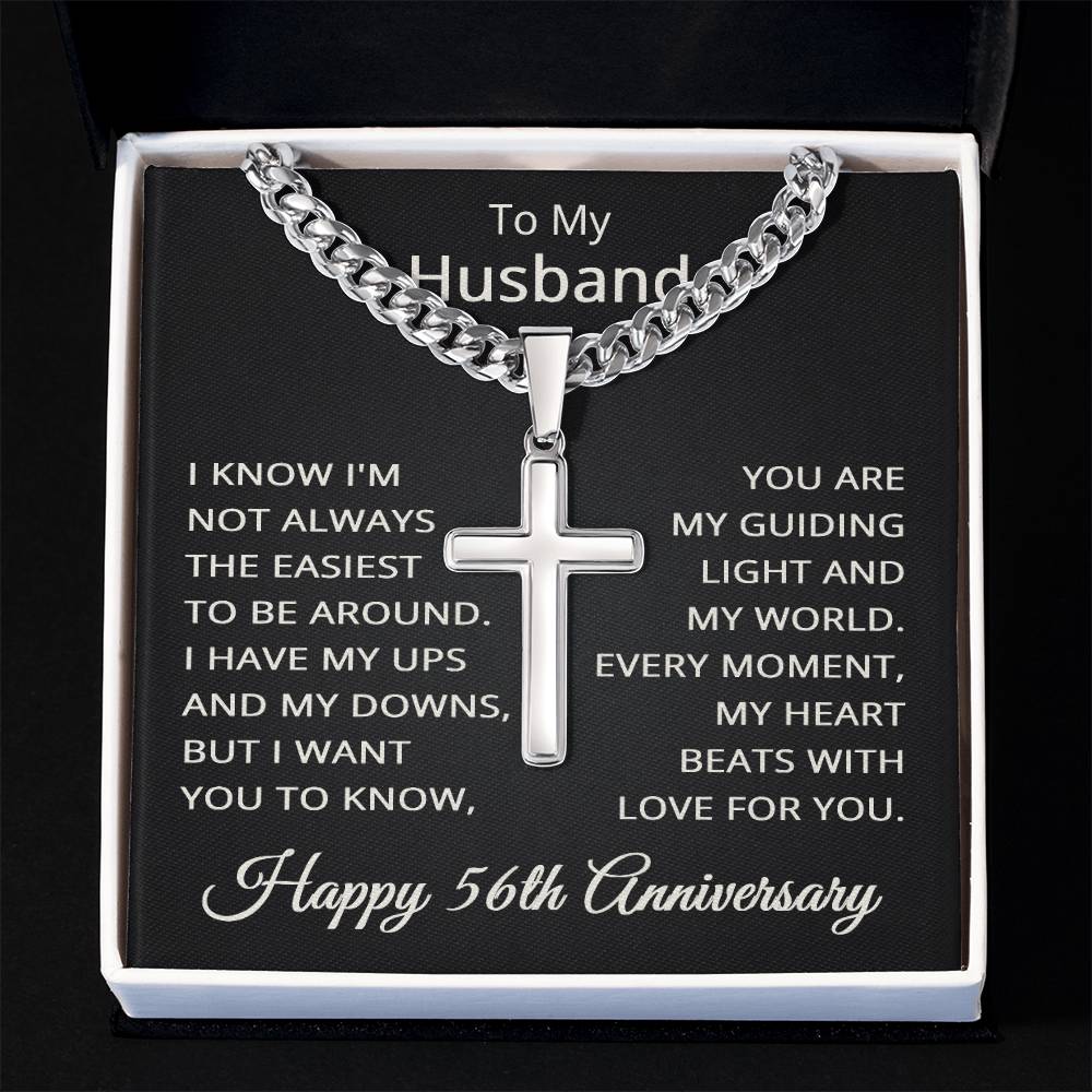 56th Anniversary Necklace for Husband 56 Years Anniversary Jewelry for Him Men Cuban Link Chain with Cross Pendant