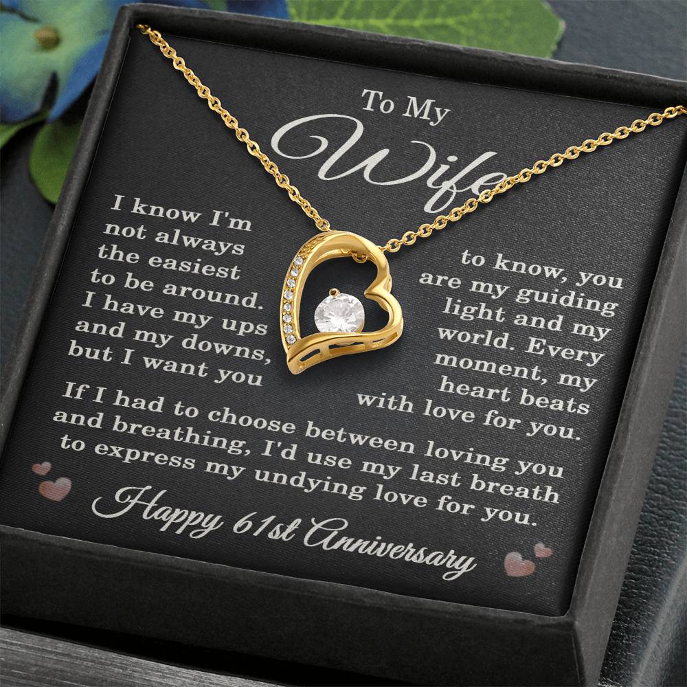 61st Anniversary Necklace for Wife from Husband 61 Years Anniversary Jewelry for Her Women Forever Love Pendant