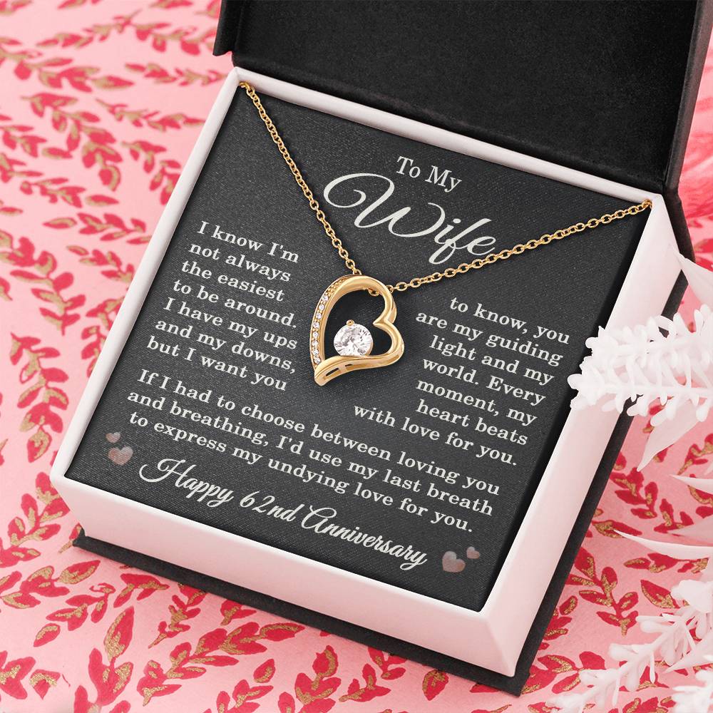 62nd Anniversary Necklace for Wife from Husband 62 Years Anniversary Jewelry for Her Women Forever Love Pendant
