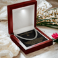 Your piece is lovingly packaged in a complimentary soft touch box for easy gifting. Elevate your presentation by upgrading to the mahogany style luxury box, which features a brilliant LED spotlight.