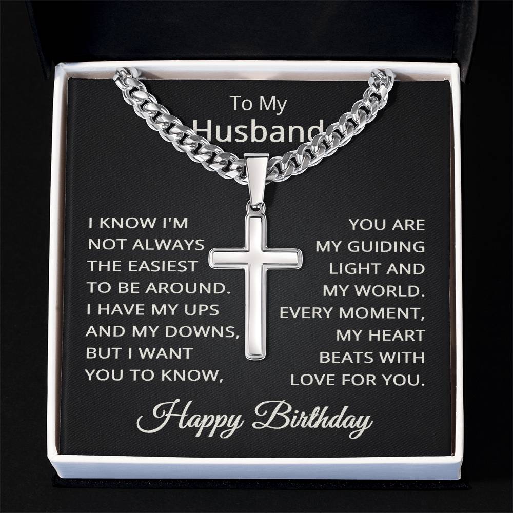 Husband Birthday Necklace for Husband Happy Birthday Gift for Him Men Jewelry Cuban Link Chain with Cross Pendant