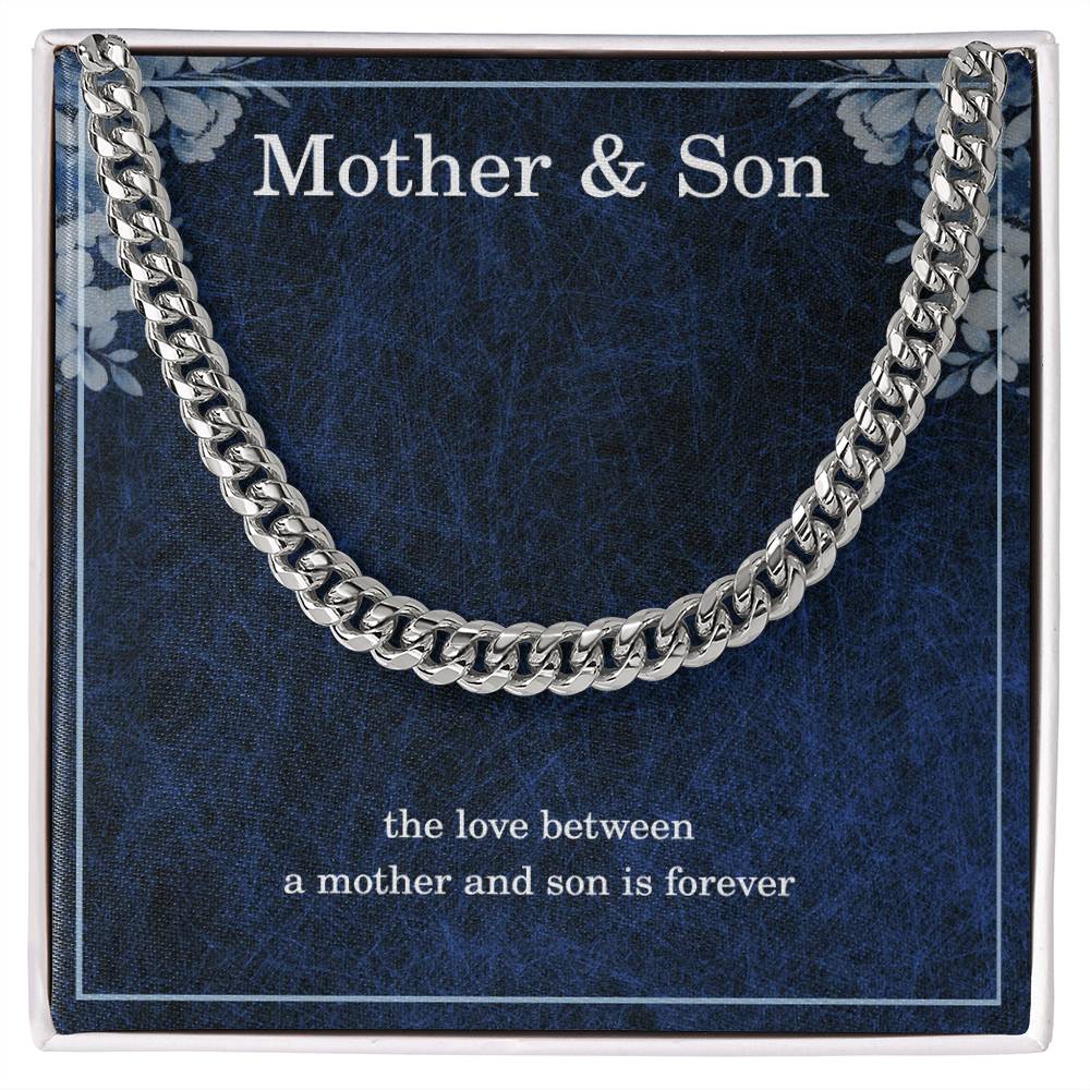 Mother Son Necklace from Mom – Son’s Cuban Link Chain for Birthday or Christmas – A Link Tied by Angel’s Hands