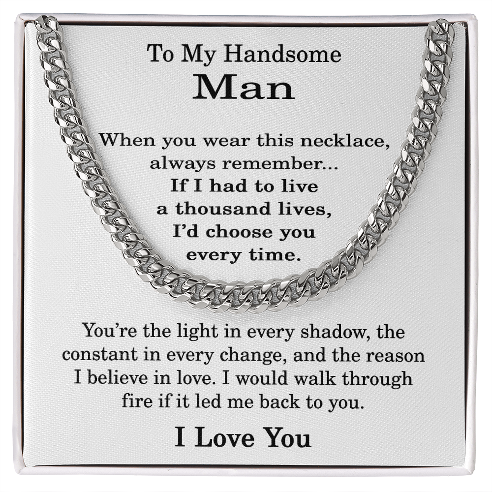 To My Handsome Man Necklace - Stainless Steel Cuban Link Chain Necklace for Husband or Boyfriend