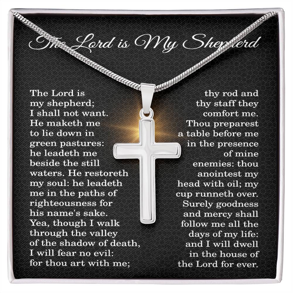 Psalm 23 Cross Pendant Necklace – “The Lord Is My Shepherd” with Adjustable Snake Chain